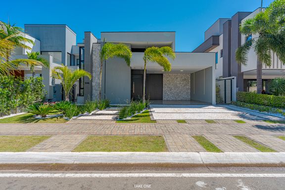 Característcas: -1200m² de terreno -418m² de construção -4 suítes com closet, sendo o closet da master muito amplo e banheiro com banheira de imersão e ducha dupla. Todas as suítes com varanda privativa. -Home theater -Escritório -Lavabo -Cozinha em conceito aberto com cuba farm (com cooktop, forno elétrico, máquina de lavar louça coifa e geladeira side by side) -Área gourmet com churrasqueira, cooktop e cuba farm. -Banheiro externo -Piscina com borda infinita e prainha e solarium. -A casa será entregue com planejados na cozinha, área gourmet, banheiros e no closet da suíte master; closet de 2 suites, aquecedor solar com boiler pressurizado de 1000l; ar condicionado nos dormitórios, sala e home theater. -Construção com materiais de primeira linha, laje e telhas atérmicas; persianas automatizadas; porta de entrada em ACM