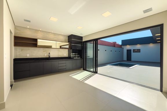 Imóvel sensacional à VENDA no condomínio Gran reserve quadra 04 lote 18, onde espaço é o diferencial deste imóvel ✅ Sala e cozinha ampla em conceito aberto e com pé direito duplo ✅ Cozinha com armários embutidos e Cuba dupla ✅ Casa conta com lavado e banheiro na piscina ✅ 3 suítes, sendo 1 suítes master com closet ✅ Home office amplo e com janela ✅ Suíte master com ducha e pias duplas ✅ Garagem ampla para dois carros ✅ Piscina integrada a área gourmet ✴️ Diferencias > ✅ Esquadrias golden com persiana motorizadas ✅ Todos os revestimentos em porcelanato de alta qualidade Helena Porcelanato ✅ Móveis planejados nos banheiros, closet, cozinha, área gourmet, home da sala e roupeiro no corredor ✅ Aquecimento solar instalado e funcionando, nas duchas e torneiras dos banheiros e da cozinha ✅ Casa preparada pra ar condicionado ✅ Sistema de som embutido bluetooth instalado na área gourmet ✅ Pintura Suvinil ✅ Alicerce todo impermeabilizado ✅ Casa preparada para 110V ✅ Portas tipo Pormade laqueada