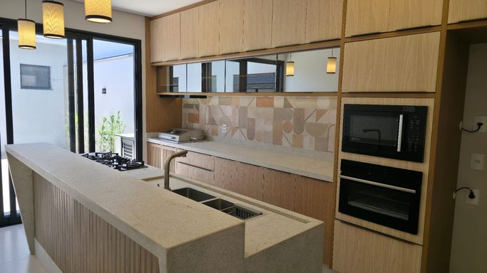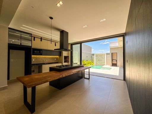 TÉRREA: Área Total 200,00 m² Área Construída 138,65 m² - 03 dormitório, sendo 1 suíte; - Suíte com closet instalado; - Cozinha com cooktop, forno, micro-ondas, coifa e planejados; - Ambientes preparados para ar condicionado; - Esquadrias automatizadas nos dormitórios; - Louças e metais alto padrão (Deca, Docol, Tramontina); - Pisos e revestimentos alto padrão; - Fachada com revestimentos e janela em pele de vidro; - 01 vagas de garagem coberta e 2 descobertas; - Aquecedor solar, boiler 400L; - Circuito de tomadas bifásico; - Preparação para energia fotovoltaica; - Móveis planejados na cozinha, gourmet, closet da suíte master, lavanderia e banheiros; - Paisagismo. * Imagens ilustrativas e podem sofrer alterações no imóvel. Infraestrutura do Condomínio: Mata interna Quadra poliesportiva Salão de festas Salão de jogos Piscina Portaria 24 horas Não perca esta oportunidade única! Entre em contato para mais informações e agende sua visita.