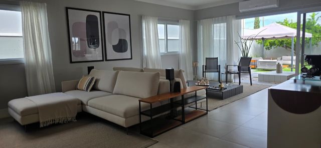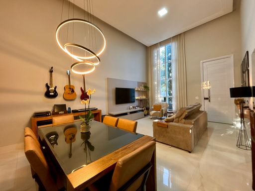 Características: - 03 suítes sendo a master com closet; - Escritório; - Lavabo; - Cozinha com cooktop e planejados; - Ambientes preparados para ar condicionado; - Piscina com cascata, hidro e preparação para aquecimento; - Banheiro para área de piscina; - Esquadrias automatizadas nas suítes; - Louças e metais alto padrão (Deca, Docol, Tramontina); - Pisos e revestimentos alto padrão; - Fachada com revestimentos, detalhes em madeira e janela em pele de vidro; - 02 vagas de garagem coberta e 2 descobertas; - Aquecedor solar, boiler 500L; - Circuito de tomadas bifásico; - Preparação para energia fotovoltaica; - Móveis planejados na cozinha, escritório, sala de estar, suíte master, closet da suíte master, área de serviço e banheiros; - Paisagismo tropical. -Previsão Março 2026 Condomínio com área de lazer completa, com quadra esportiva, quadra de tenis, piscina, academia, quadra de areia, pista de caminhada.