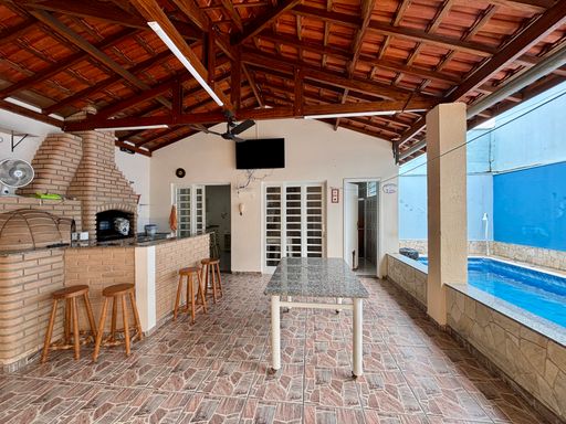- 3 quartos, sendo uma suíte com banheira; - Banheiro social completo; - Cozinha planejada reformada; - Sala de jantar; - Sala de estar; - Lavanderia; - Churrasqueira com forno de pizza; - Piscina aquecida; - "Edícula" ao fundo, com cozinha auxiliar, quartinho e banheiro; - Garagem coberta; - Chuveiro elétrico; - Ar condicionado na suíte; - Armários planejados na suíte, quartos e banheiros; - Corredor lateral de ambos os lados. Ótima localização, próximo a comércios, supermercados, farmácias, escolas, podendo fazer tudo apé.