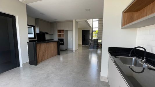 Características: -Área do Terreno 178,67 m² -Área construída 122 m² -Sala para dois ambientes, -Cozinha americana com móveis planejados, -Área gourmet com armários planejados, integrada à área de serviço, -3 dormitórios sendo 2 suítes -Garagem para 2 veículos, sendo 1 coberta. -Jardim de inverno Condomínio: -Academia -Espaço pet -Playground -Brinquedoteca -Churrasqueira -Piscina -Quadra poliesportiva -Campo de futebol -Salão de festas -Portaria e segurança 24 horas