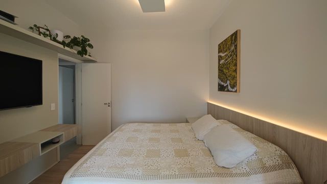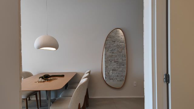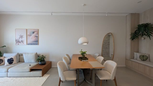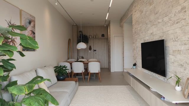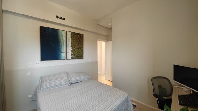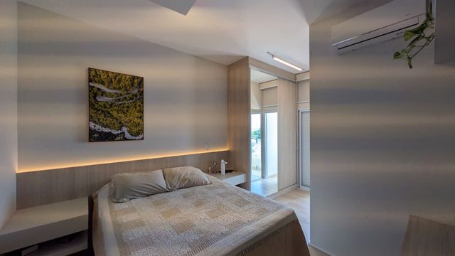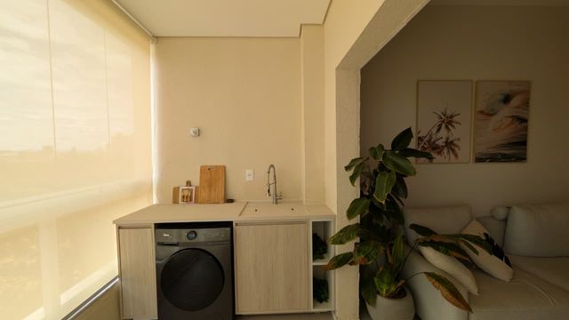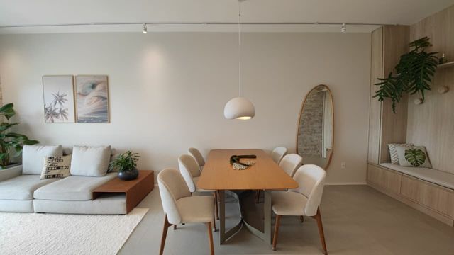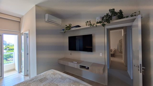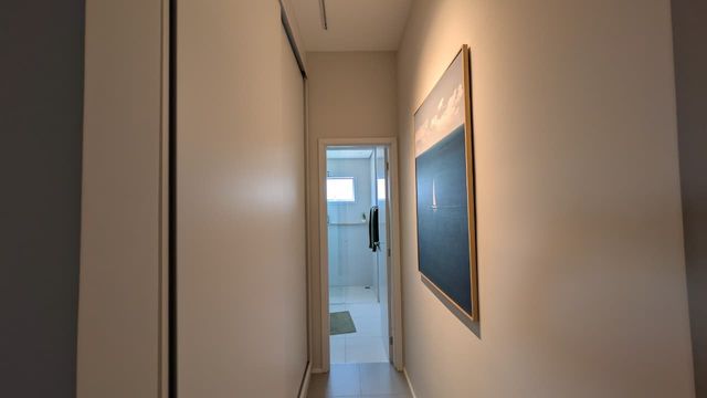 Cozinha, integrada com sala e sala de jantar, chapelaria. Varanda estendida, preparado de ar condicionado nos ambientes, mas instalado só no quarto master.