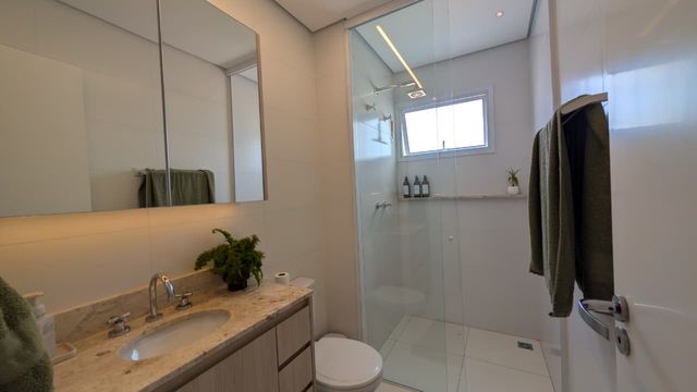 - São 3 quartos, sendo 1 suite e outro banheiro + lavabo.