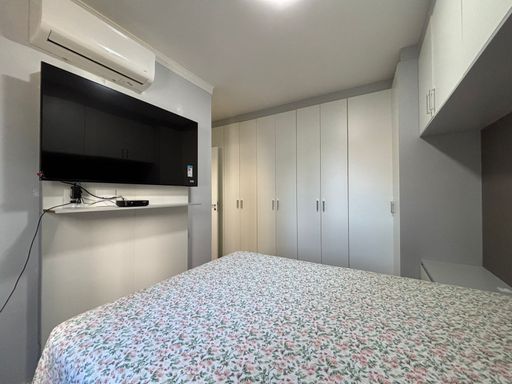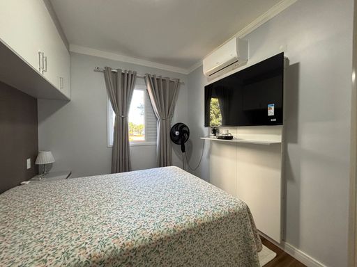 - Suíte com ar condicionado, guarda-roupas e painel para televisão;