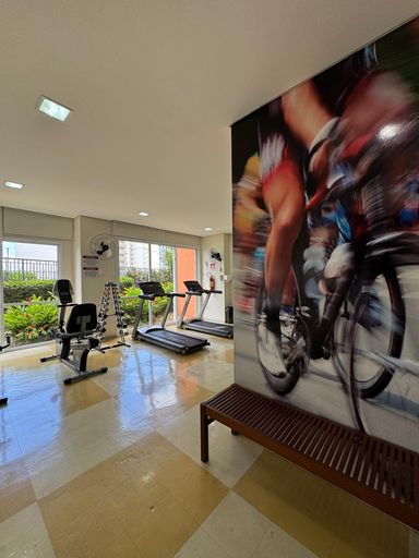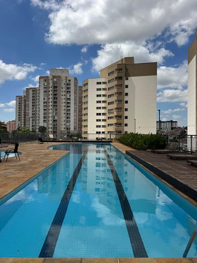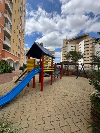 O condomínio possui área de lazer completa com piscina, academia, sala de cinema, salão de festas, churrasqueira, sala de massagem, brinquedoteca, salão de jogos, sauna, mercado 24 horas e playground.