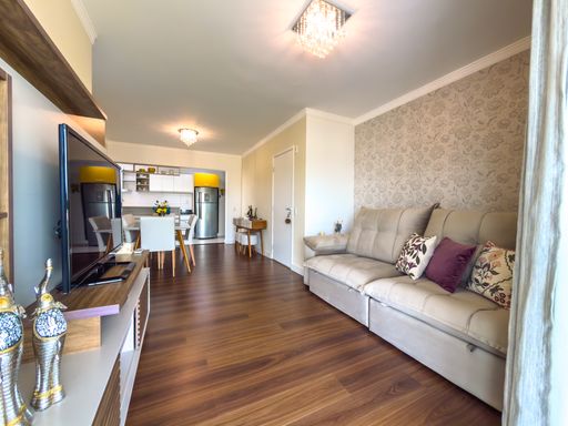 - Sala de estar e jantar integradas, com iluminação em lustres;
