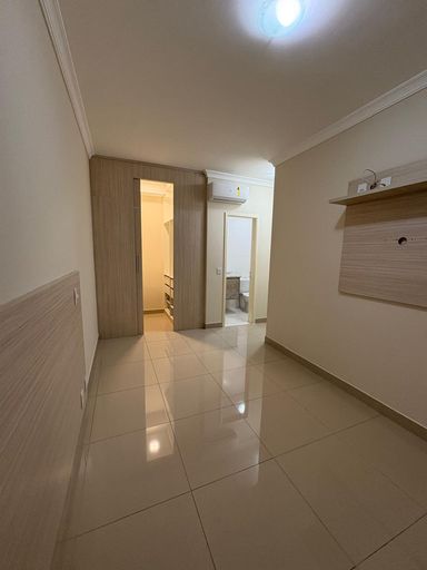 - 1a suíte com cama box casal, cabeceira, painel p tv, closet, persiana fixa e ar condicionado;