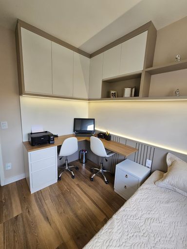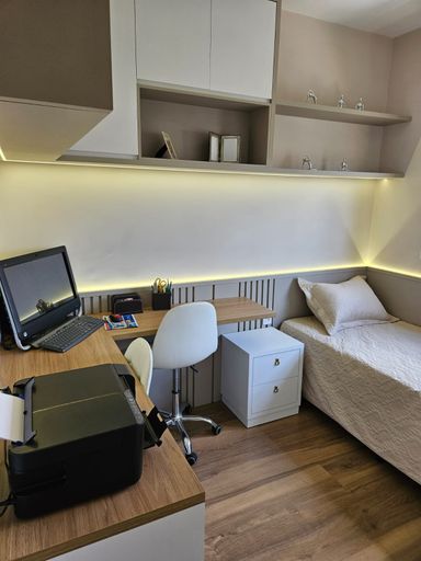 - 3 quartos sendo 1 suíte, marcenaria completa e decorado com ar condicionado;