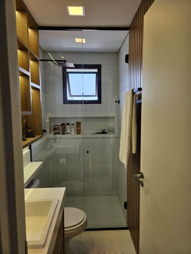 - Varanda fechada com vidros e churrasqueira;