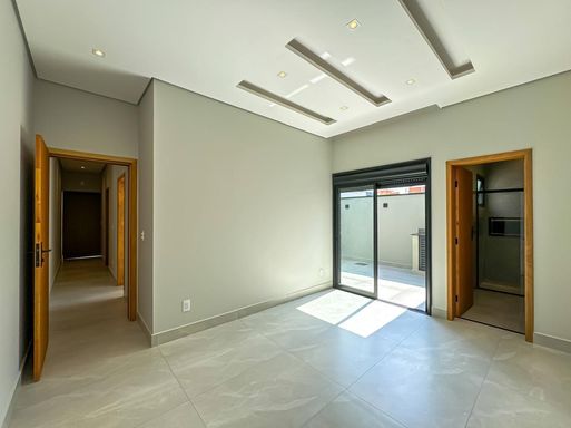 Suíte principal com teto de gesso rebaixado, rasgos e cortineiro iluminados, banheiro com pia esculpida