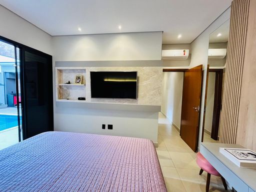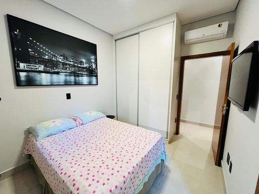 Ar-condicionado em todos os quartos e sala.