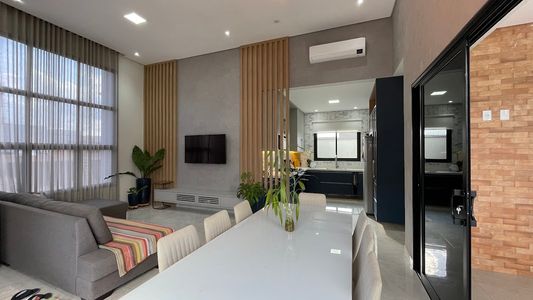 - Sala de jantar e estar integradas com pé direito de 4 metros