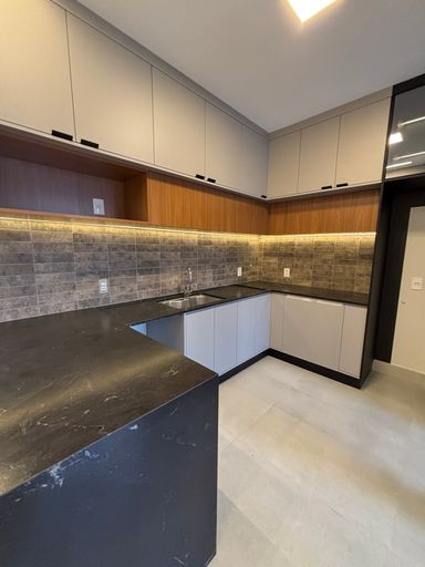 Cozinha ampla com marcenaria de alto padrão