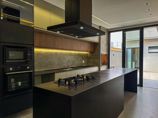 - Cozinha com cooktop, forno, micro-ondas, coifa e planejados;