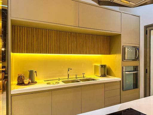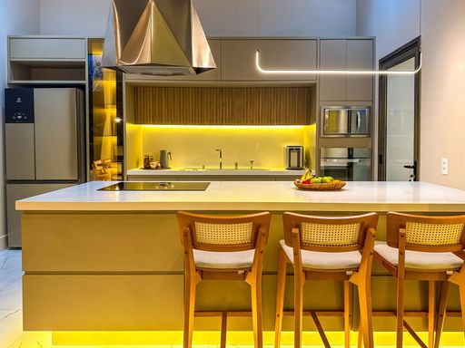 - Cozinha com Cooktop Indução, Forno, Micro-ondas e Coifa;