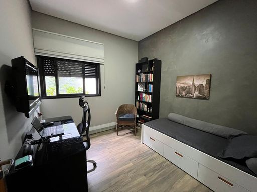 Armários planejados na cozinha, quarto, banheiros, sala, lavanderia e área gourmet. Eletrodomésticos embutidos na cozinha, forno elétrico, microondas e cooktop 4 bocas de indução Electrolux e coifa de ilha Franke.