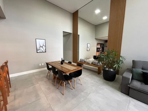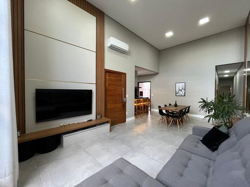 Linda casa térrea em condomínio fechado, ambientes modernos, bem planejados e integrados, com acabamento impecável.