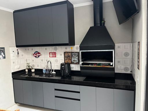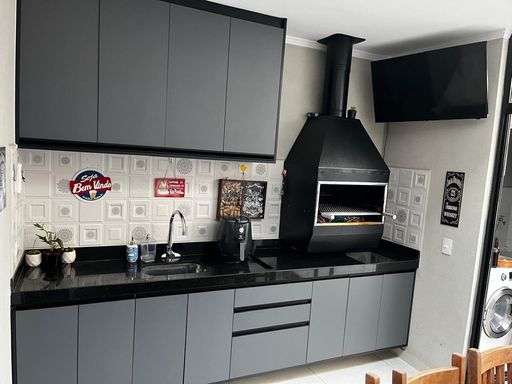 -Área gourmet com móveis planejados, churrasqueira e ar-condicionado