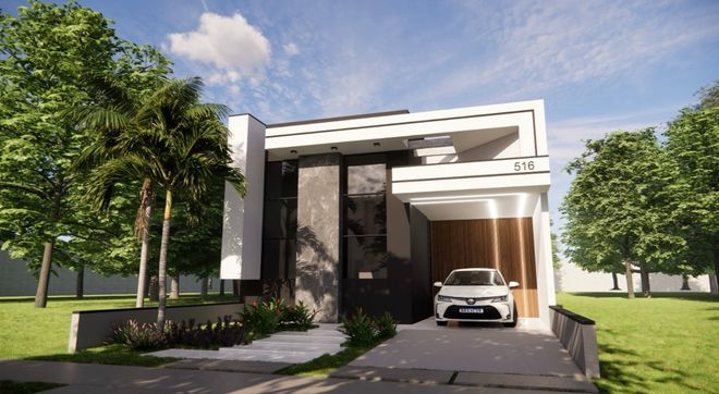Contém três suítes, lavabo, cozinha e gourmet integrada, com quintal equipado com chuveirão e jardim.