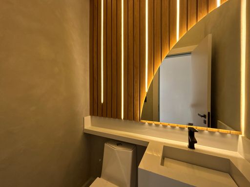 – Iluminação em LED com perfils, iluminação na fachada em LED