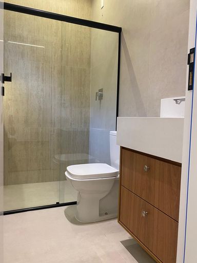 A casa será entregue com gabinetes nos banheiros, boxes, closet montado e planejados na cozinha, além de cooktop e coifa.