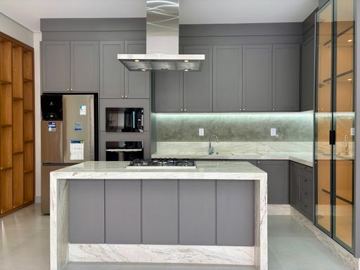 - Cozinha com Geladeira, Forno, Microondas, Cooktop e Máquina de lavar louça;