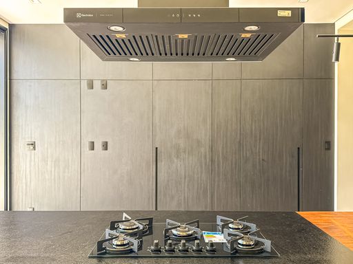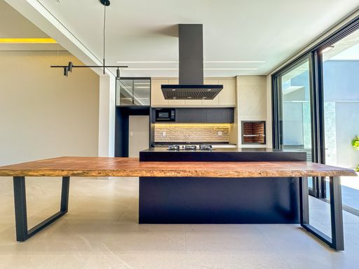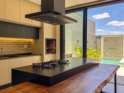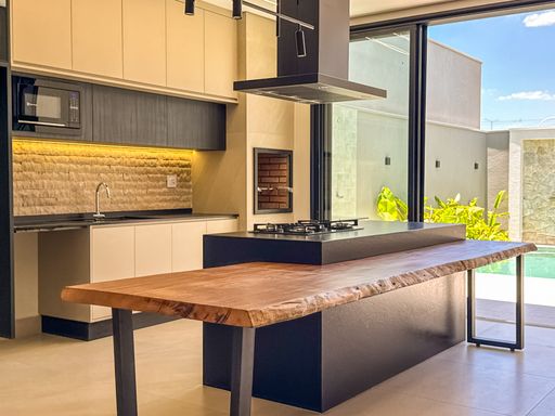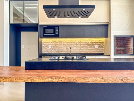 - Cozinha com cooktop, forno, micro-ondas e coifa;