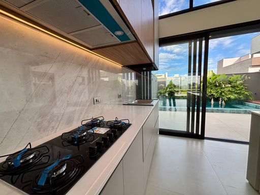 - Cozinha com cooktop, forno, coifa e micro-ondas;
