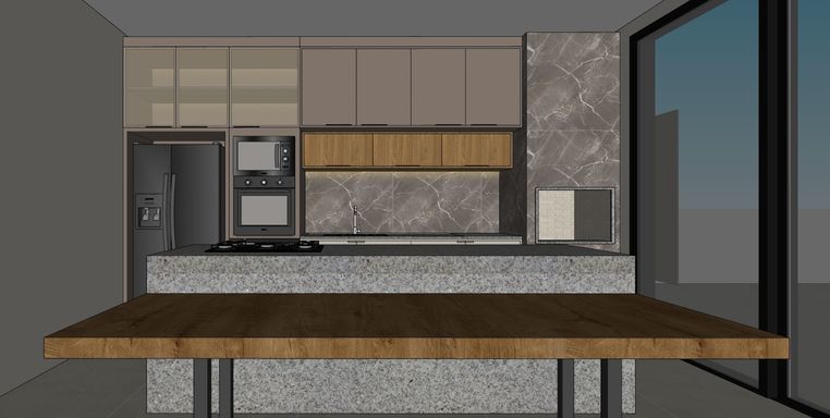 - Cozinha com cooktop, forno, micro-ondas e coifa;