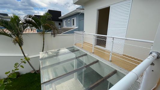 - Garagem coberta para 2 carros grandes e espaço descoberto para mais 3 veículos