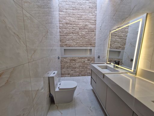 -São 3 suítes, sendo uma master com closet e banheiro com chuveiro e cuba dupla