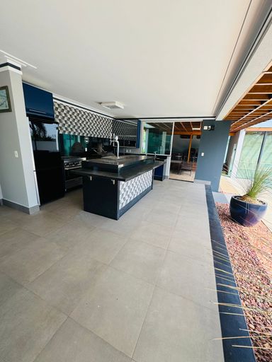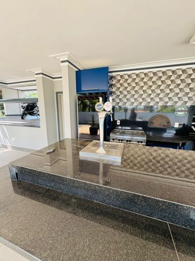 - Área Gourmet completa com churrasqueira a carvão, forno de pizza, fogão e chopeira com vista para a piscina;