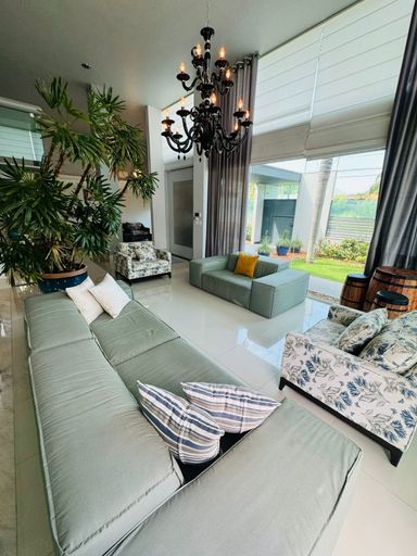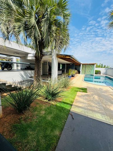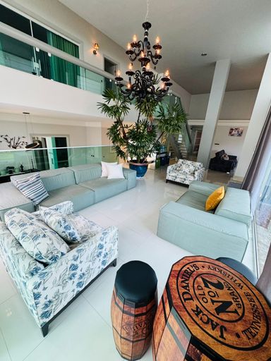 Casa de Condomínio mobiliada a venda com 3 quartos sendo 1 suíte com piscina climatizada, jacuzzi, sauna e escritório. Um paisagismo deslumbrante, casa ampla, mobiliada, mto bem localizada. Com segurança, alarme, câmeras e ronda 24h. Condomínio com lagos, parquinho, academia e campo de futebol.