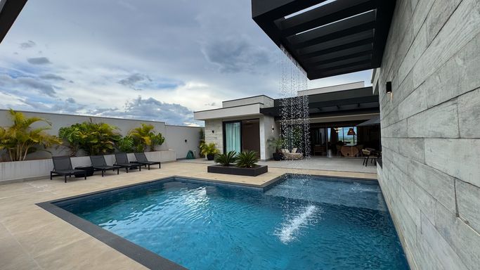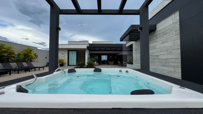 -Piscina aquecida com cascata e sistema de ozonização