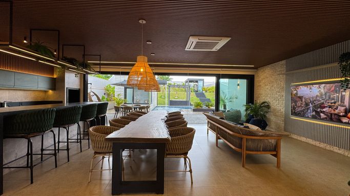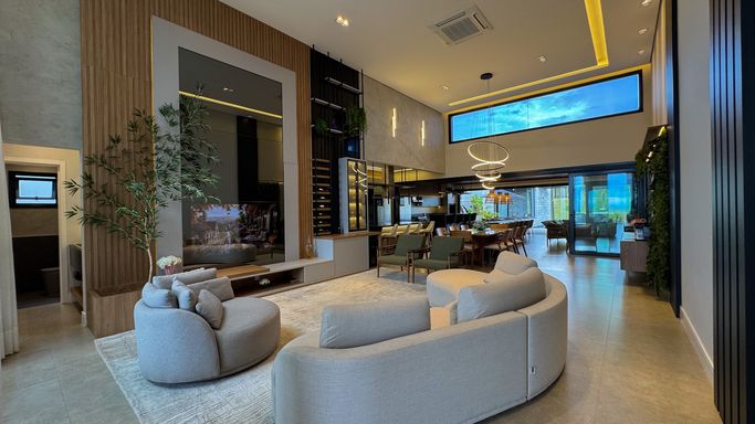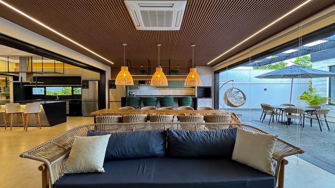 -Living amplo integrado à cozinha e área gourmet