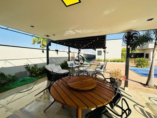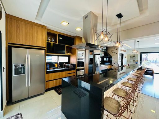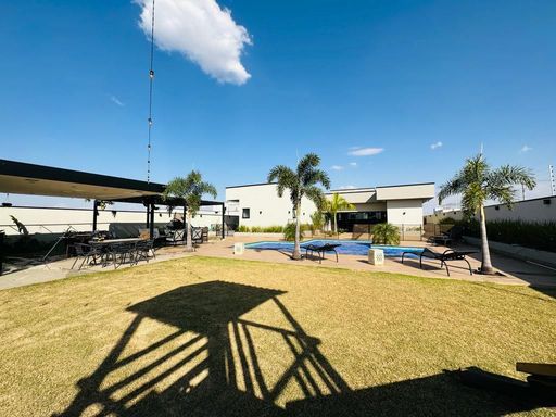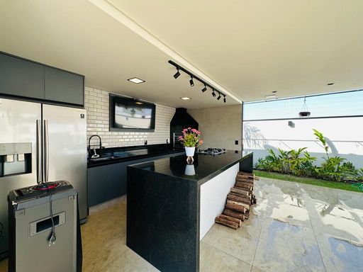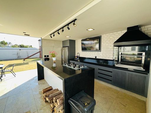 - Salão de festas equipado com mesas, cadeiras, ar-condicionado, churrasqueira, forno de pizza e fogão a lenha.