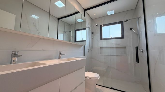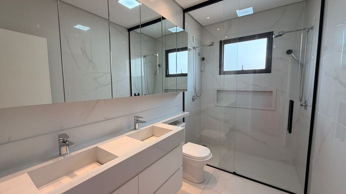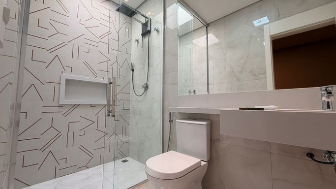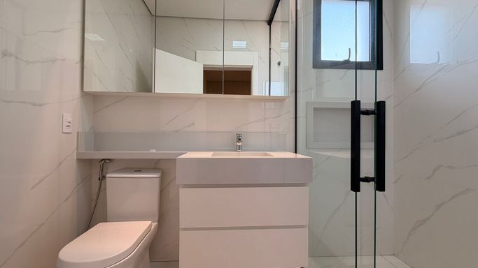 - Suíte Master: Equipada com closet planejado, ar-condicionado instalado e detalhes exclusivos de marcenaria.
