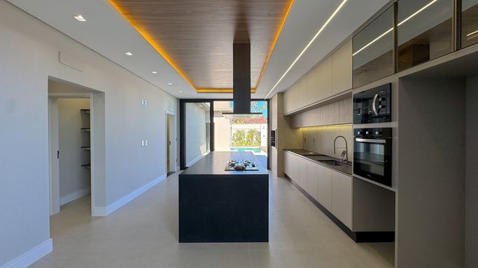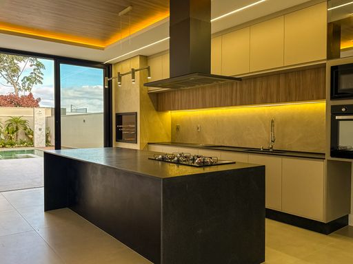 Cozinha equipada com cooktop, forno, micro-ondas e coifa Tramontina