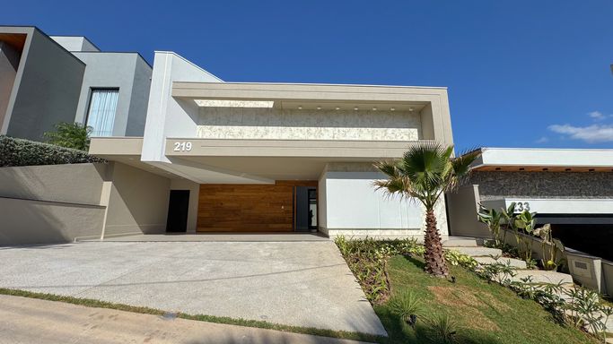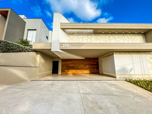 Fachada moderna com painel ripado em madeira Garapeira