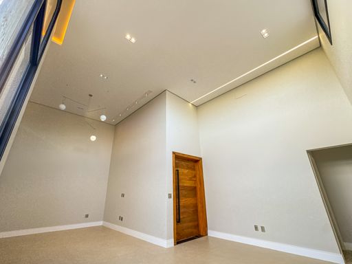 Sala de estar e jantar integradas, com acabamento de alto padrão