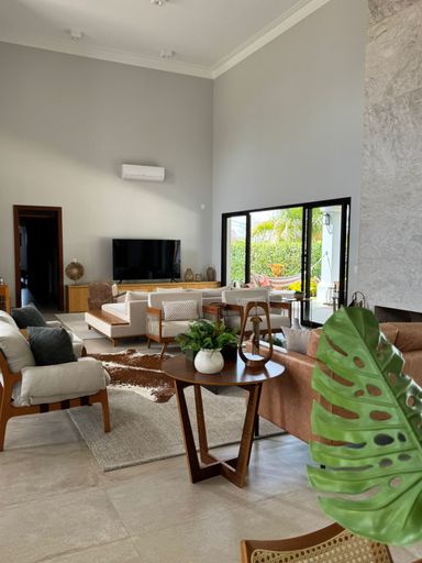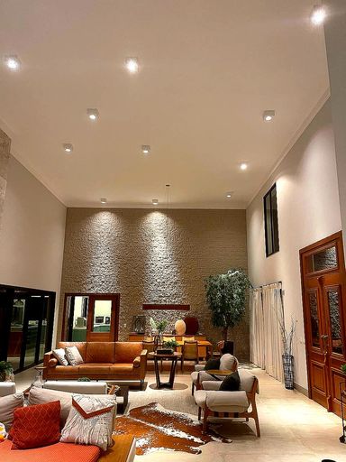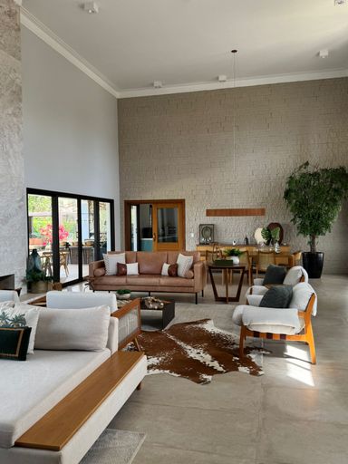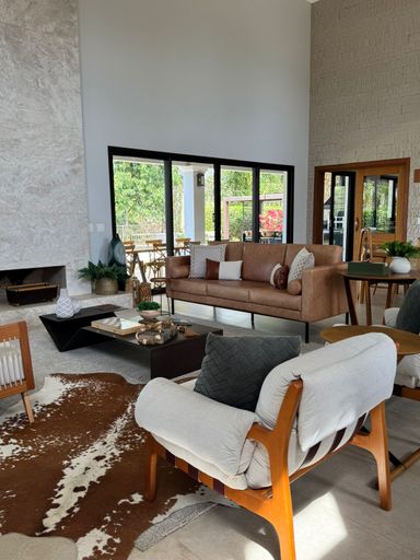- Sala imponente com pé-direito de 5m e lareira em mármore travertino.