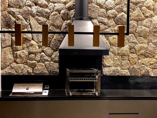 - Varanda gourmet completa com ilha refrigerada e churrasqueiras premium.