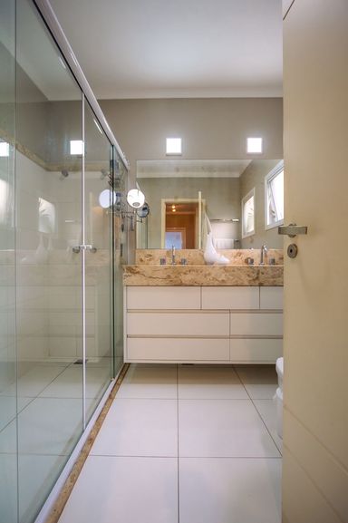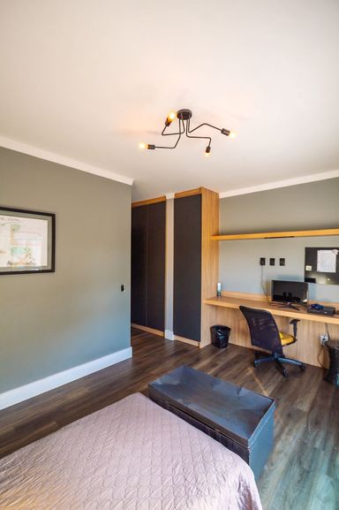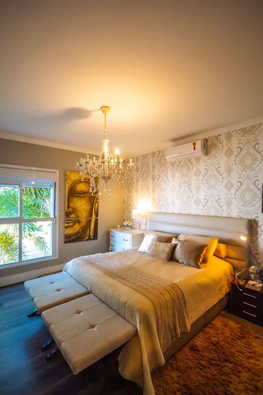 4 Suítes, sendo 1 no andar térreo, todas com móveis planejados nos quartos e banheiros.
