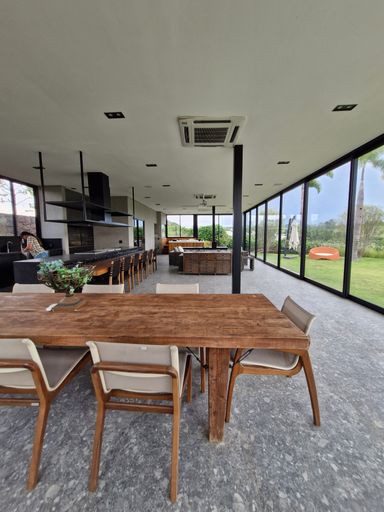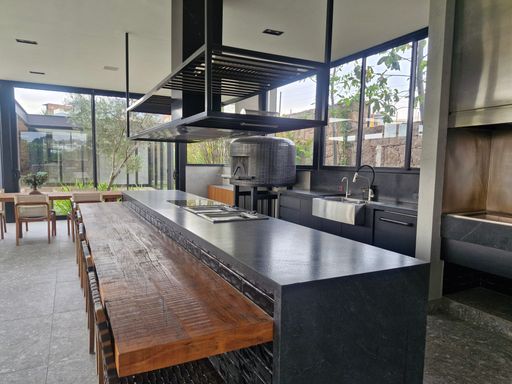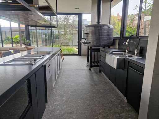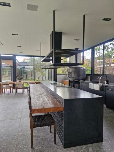 Cozinha gourmet interna e externa com equipamentos de ponta