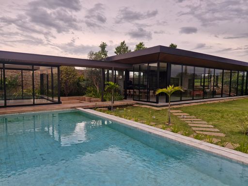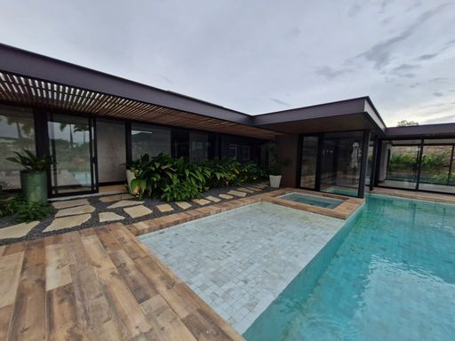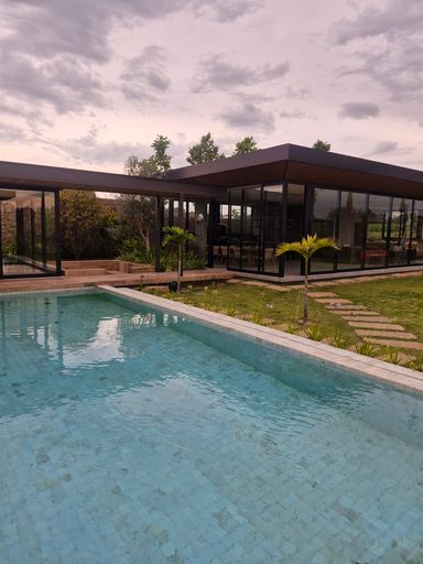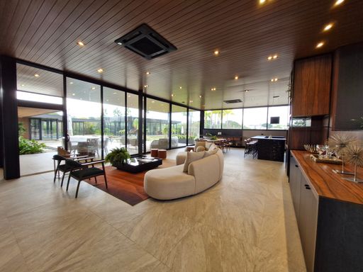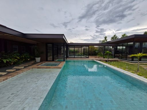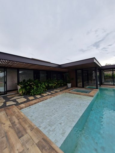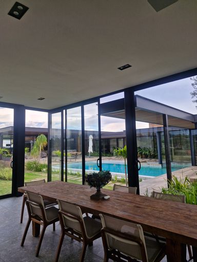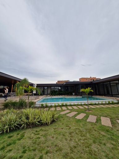 São 6 suítes, 4 na casa principal e 2 na área de hóspedes