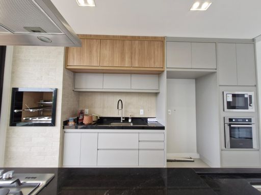 -Cozinha completa com cooktop, forno elétrico, microondas e coifa