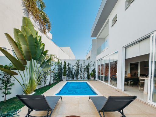 Sobrado semi-novo, pouco utilizado, com projeto moderno, ambientes amplos e bem iluminados, localizado em bairro tranquilo e valorizado.