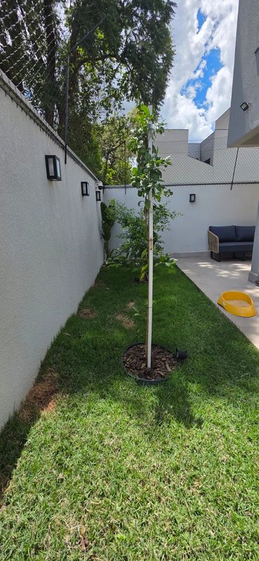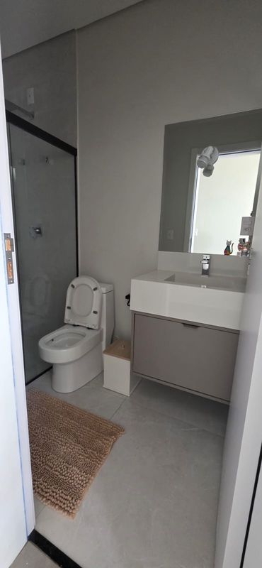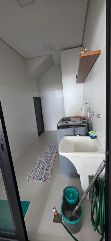 A garagem possui capacidade para até três veículos e já dispõe de carregador para carro elétrico. A entrada principal é equipada com porta em alumínio, fechadura eletrônica e sistema de segurança..
