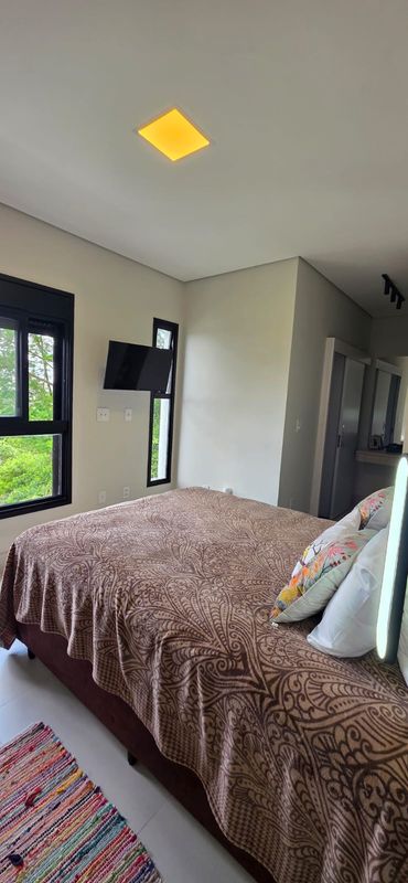 A área íntima é composta por três suítes amplas, todas com ar-condicionado, móveis planejados e persianas automatizadas sendo a suíte master com vista permanente para a mata.